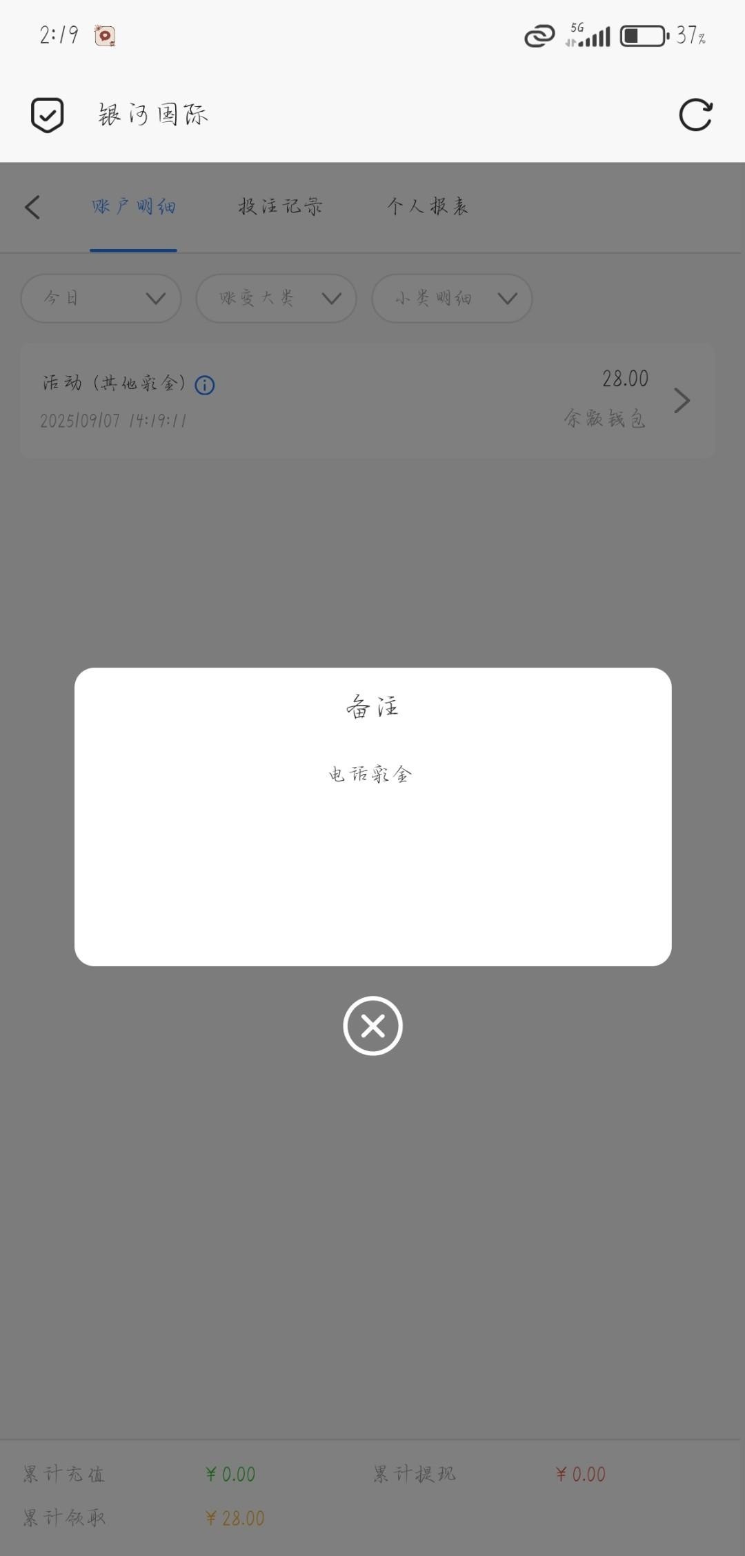 【银河634】电话彩金