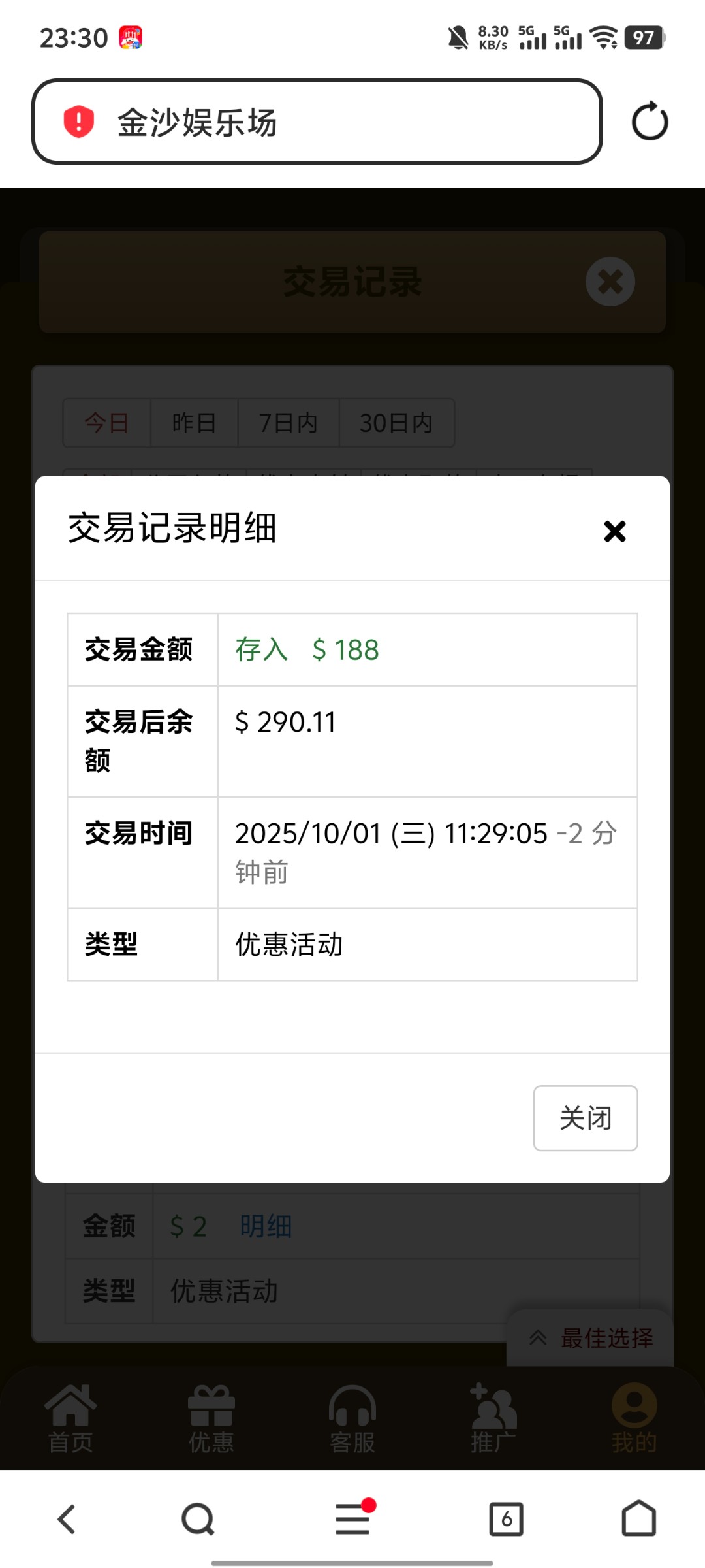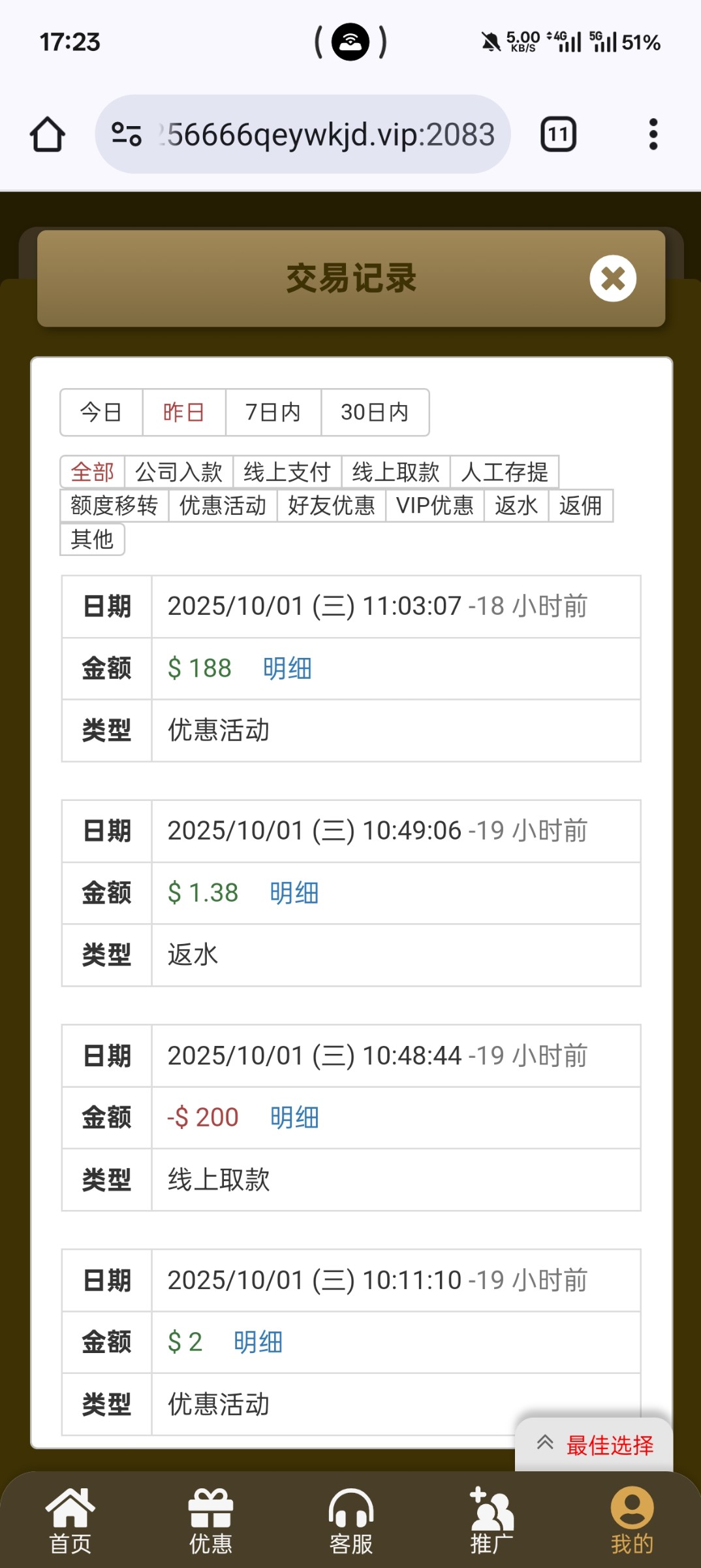 以上俩个台子国庆充值100,我分别送了188,和88