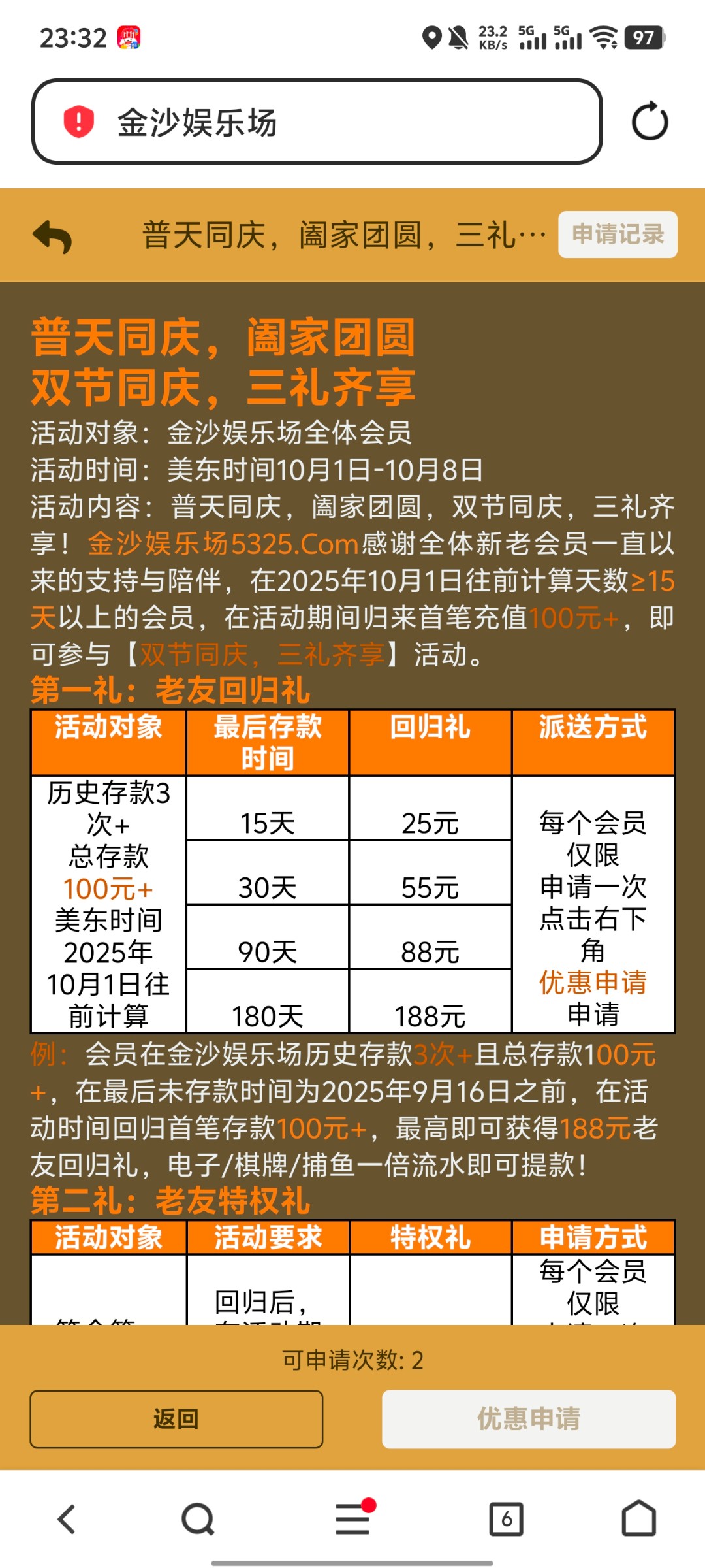 那个回归礼是啥?我他妈已经一年没充值了,现在充100是不是可以领188这个意思?