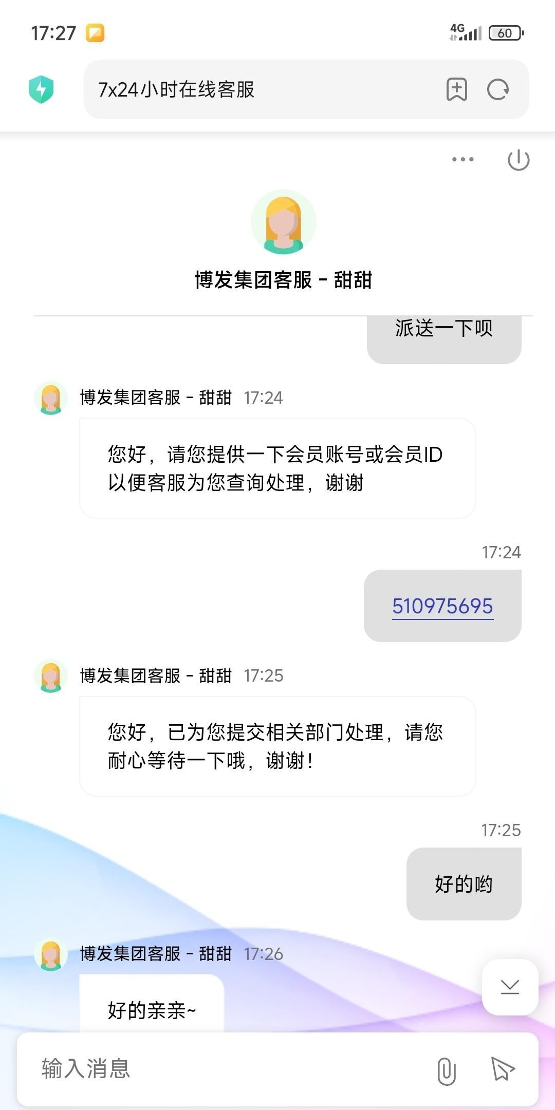 z727905387 找客服 客服说自动到 我让他帮我查一下 他还真给我查了 然后直接送了 可惜没打出来